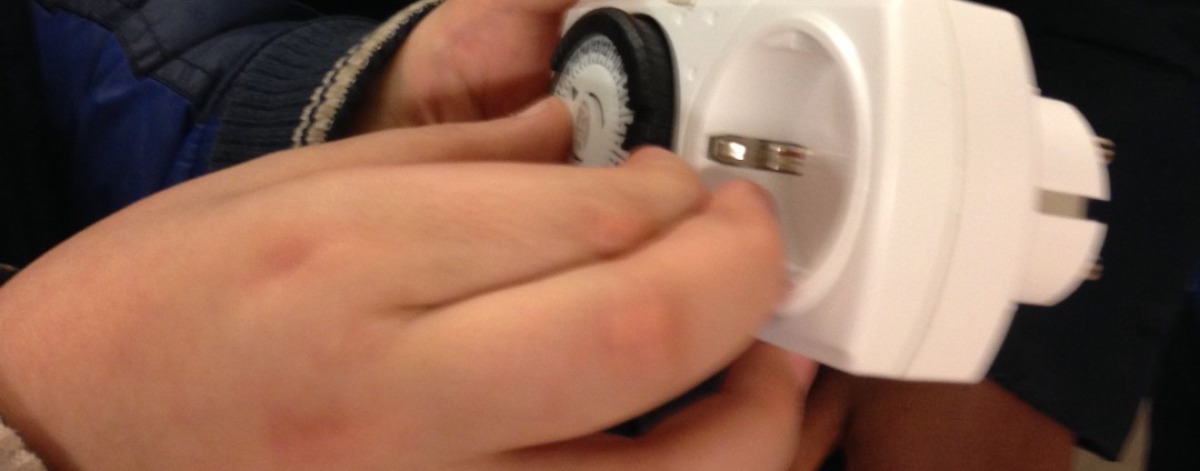 Mit Zeitschaltuhr beleuchten wir unser Mini-Beet von 5 bis 21 Uhr.Ungefähr 16 Stunden schalten wir auf der Zeitschaltuhr ein und warten ab.